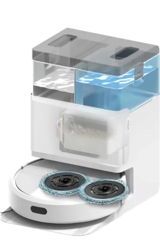 Robot aspirador iRobot Roomba Combo 505 con base de autolavado. Sin abrir NUEVO Robot Roomba Plus 505 Combo con Base AutoWash multifunción y autolimpiable, Mopas DualClean con PerfectEdge, PrecisionVision IA, Clearview Pro LiDAR, Secado Aire Caliente mopas, 75 días autovaciado_N - Diseño moderno en. - Depósito de agua integrado en la base.