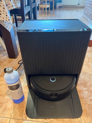 Robot aspirador y friegasuelos iRobot Roomba Combo j7. - Modelo: Combo j7 - Color: Negro - Conexión Wi-Fi - Paño retráctil - Mapeado avanzado - Navegación Inteligente - Recarga y reanuda el Trabajo. - Incluye set completo de repuestos a estrenar valorado en 75€: 3 paños, 3 escobillas de esquinas y 1 botella de detergente fregasuelos. Se compró en mayo de 2024, por lo que todavía le queda más de 1 año de garantía. Muy buen estado. Poco uso.