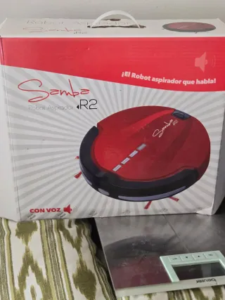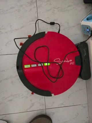 Robot aspirador de limpieza Samba R2 en color rojo. Diseñado para facilitar la limpieza del hogar. - Diseño redondo y compacto. - Indicadores LED de estado.solo tiene un problema.que lo cargas y la batería le dura muy poco ..