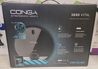 Robot aspirador Conga 3890 Vital en color negro. Diseñado para una limpieza potente y eficiente. Tecnología 4 en 1: aspira, barre, friega y pasa la mopa. Cepillo Jalisco para capturar las partículas más finas.Navegación inteligente ITech Laser 360. Room Plan 2.0 para gestión inteligente de estancias.Producto con garantía. Hacemos envíos a toda España (salvo Canarias, Ceuta y Melilla). Tienda en C/Sambara 101, Madrid. Teléfono 912600555. Síguenos en Facebook e Instagram tutiendadesegundamano. Visita nuestra web tutiendadesegundamano.