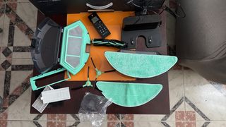 Robot aspirador en muy buen estado, usado solo dos veces. Tengo el embalaje original y las instrucciones. Contiene el aspirador con 3 cepillos (normal, multifunción y mascotas), mando remoto, tanque de polvo, tanque de agua, mopa de repuesto y cepillo para limpiar el robot. Se conecta vía wifi y se puede controlar desde la app. Modo de fregado inteligente con 3 niveles de caudal de agua. Gestión inteligente por habitaciones y mapeo con memoria de hasta 5 casas