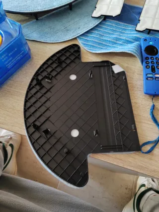 Depósito para aspiradora robot Conga 950. Compatible para otras aspiradoras Se uso aveces. Practicamiente nuevo. - Color gris y azul. - Diseño rectangular con asa.