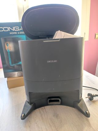 Se vende Robot aspirador - Cecotec Conga 8290 Immortal Ultra Power Home Genesis usado en dos ocasiones, todavía esta hasta con las pegatinas. 4 en 1: barre, aspira, friega y pasa la mopa. Navegación láser, gran potencia, motor de succión de 7000 Pa, bolsa de 3L, cuenta con base de autovaciado, Wi-Fi, en color negro. Compatible con aplicación por móvil Cecotec y asistentes virtuales. Función fregona. Un cepillo lateral para llegar a cualquier rincón. Detecta obstáculos. Autonomía de 280 minutos. 3 niveles de potencia de aspiración y de fregado. - Diseño redondo y compacto. - Acabado brillante en la parte superior.