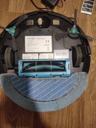 Robot aspirador Conga 1790 Ultra 4in1 el robot aspira, friega y barre. SmartGyro 3.0., base de carga, cargador, mando, instrucciones, mopa, cepillos..., todos originales. Aplicación para Smartphone con mapa. Está completo, poco usado, con muchos repuestos totalmente nuevos y sin usar. Arranca pero se para enseguida, no sé si será la batería o algún tipo de avería. Realmente vendo los repuestos, el robot lo regalo para algún manitas o para piezas.
