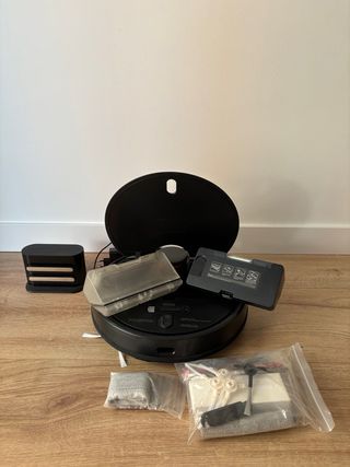 Aspirador robot Xiaomi con su base de carga y accesorios. - Aspirador robot blanco. - Base de carga negra y blanca. - Cargador. - Filtros de repuesto. - Libro de instrucciones Esta en perfecto estado ni arañazos ni roturas usado 4, 5 veces lo más. MUCHAS MAS COSAS EN MI PERFIL