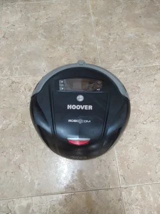 Aspirador robot de la marca Hoover, modelo Robocom RVC0011 Diseñado para la limpieza automática de suelos. Se vende entero o por piezas. - Color negro y gris. - Forma redonda. - Panel de control superior con pantalla.