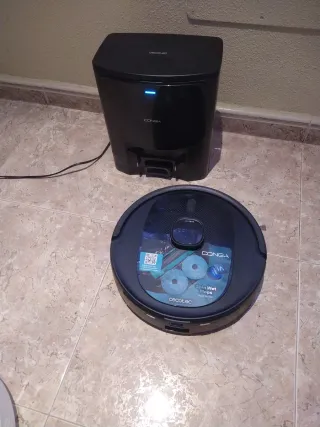 Se vende Robot aspirador Conga Cecotec 9990 AI con su base q aspira la suciedad y carga. El depósito del aspirador tiene algunos desperfectos pero funciona perfectamente - Diseño moderno en color negro. - Base de carga incluida. - Indicador luminoso azul.