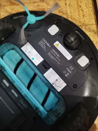 Robot aspirador de Cecotec. Barre, aspira, pasa la mopa y friega. Programable. Control con mando a distancia. Manejable desde app (se puede programar la limpieza, visualizar el historial de limpiezas, seleccionar zonas...). Funciona bien. Incluye recambios, base de carga, cepillo limpiador y manuales de instrucciones