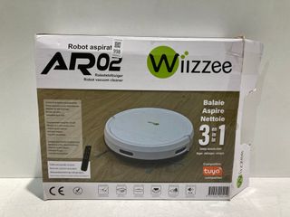 Robot aspirador Wiizzee modelo AR02 con función 3 en 1. - Navegación preprogramada. - Control remoto incluido. - Compatible con app Tuya. - Detectores de vacío infrarrojos. - Parachoques anti-choque.