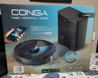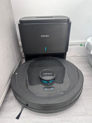Aspirador robot Conga 7490 Immortal Home con base de autovaciado. - Potencia de succión de 2600 Pa. - Autonomía de hasta 120 minutos. - Incluye 4 bolsas para la base. - Conectividad Wi-Fi y control por app. -usada tres veces literalmente