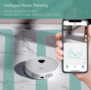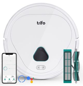 Cepillo principal más ancho y el cepillo lateral de seis garras equipado con un sistema TIRVS (Trifo Inteligente Robotics Vision System), que permite conocer el entorno a través de una cámara y elegir la ruta de limpieza más eficiente y superar los obstáculos compatible con Alexa, y se puede controlar mediante comandos de voz como Alexa se puede configurar para notificaciones de alerta en caso de robo, incluso cuando está cargando. Max no solo es una aspiradora, sino también un robot de supervisión la capacidad de batería del robot Trifo es de 5200 mAh, lo que permite una de ejecución de 120 minutos. Función de autorecarga