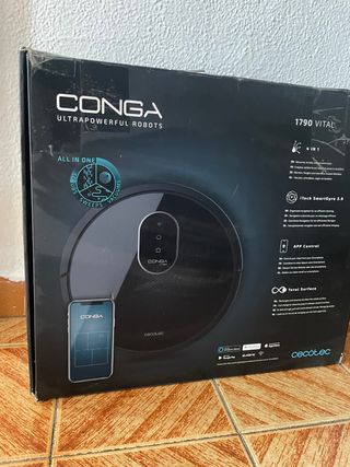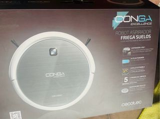 * Sin utilizar. Robot aspirador Conga Cecotec Hasta 160 minutos de autonomía con tecnología Total Surface. 2100 pascales de succión para una limpieza total. Cepillo de silicona: retira el pelo de tus mascotas. Turbo carpet. Modo turbo para una limpieza profunda en alfombras. Dos cepillos laterales que aumentan el radio de acción. 6 modos de limpieza que se adaptan a cualquier necesidad. Control total desde la App.