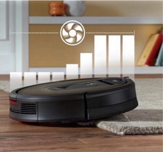 Aspirador robot iRobot Roomba de la serie 980. La Roomba 980 es el robot aspirador para realizar la limpieza más potente. Un robot inteligente, muy fácil de usar, se puede programar y su sistema Aeroforce ofrece un rendimiento de limpieza máximo que permite eliminar hasta un 50% más de polvo, suciedad, pelos y residuos en cualquier tipo de suelo. El sistema Aeroforce combina la acción de los extractores anti-enredo AeroForce, un acelerador de flujo de aire que concentra todo el flujo para multiplicar la potencia de aspiración y un motor que proporcio - Diseño circular en color negro. - Panel de control superior con botón 'CLEAN'.
