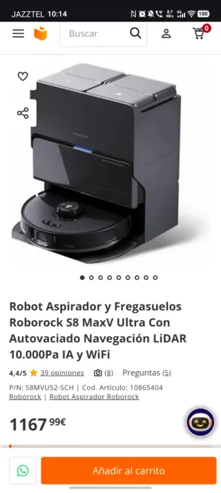 • Producto: Robot aspirador IKOHS Netbot S15 (4 en 1: barre, aspira, pasa la mopa y friega). • Estado: Muy bien conservado, con acabado en efecto fibra de carbono y mantenimiento al día. • Accesorios incluidos: Base de carga, mando a distancia, depósito de sólidos y depósito de líquidos con mopa. • Valor añadido: Incluyes la caja original con sus protecciones y un kit de recambios nuevos (filtro HEPA y cepillos laterales) sin estrenar. Precio negociable.