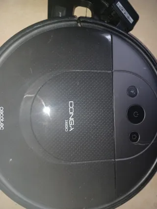 Robot aspirador Conga Cecotec 3090 en color negro. Carga bien y se conecta a la APP pero falla el sensor para iniciar. Ideal para usar las piezas para recambio. Base de carga y recambios de mopa, filtros y cepillo incluidos.