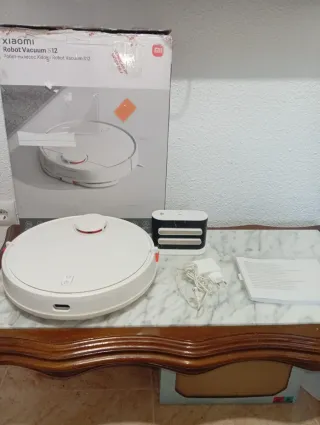 robot aspirador Xiaomi Robot Vacuum E12. Potencia y funciones: Cuenta con una potente succión de 4000 Pa y ofrece tanto aspirado como fregado en una sola pasada. Limpieza inteligente: Dispone de planificación inteligente de rutas y sensores para evitar obstáculos y escaleras. Control y autonomía: Se puede controlar mediante la aplicación Mi Home y tiene una autonomía de batería de hasta 110 minutos. nuevo a estrenar lo vendo por tener dos