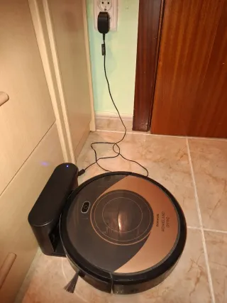 Robot aspirador (también friega) Xiaomi con base de carga, todos los accesorios originales, su caja y bolsas de empaquetado. Diseño moderno en blanco. Tiene un año de uso, y la cambiamos porque nos ha gustado tanto que hemos decidido comprar un modelo con estación de carga grande. Los únicos accesorio que habría que cambiar son las escobillas pequeñas blancas y el filtro (no son nada caros), el resto está perfecto,adjunto foto de vida útil. Con la app puedes programar las limpiezas incluso cuando no estás en casa. Está en perfecto estado, contando que es un robot aspirador que se da golpes al chocar contra muebles. Muy bien cuidado.