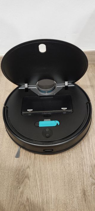 Robot aspirador y fregasuelos. Barre, aspira, friega y pasa la mopa. Usado en pocas ocasiones. Se puede programar desde el móvil mediante la App. Incluye todos los complementos.