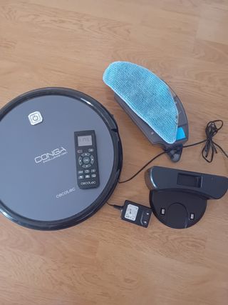 Vendo robot aspirador y fregasuelos Cecotec Conga 3090, prácticamente nuevo. Se entrega con todos sus accesorios. - Aspira y friega eficazmente. - Incluye dos mopas y cepillos. - Base de carga incluida. - Manual de instrucciones.