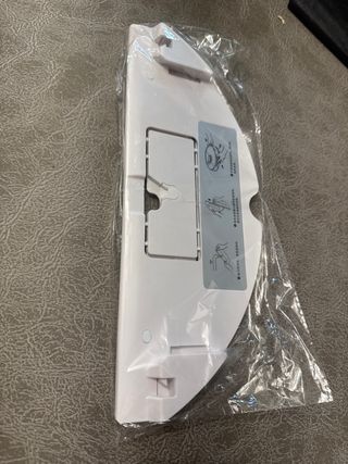 Tapa de repuesto para robot aspirador Bensoi. Pieza blanca con detalles en gris. - Diseño curvo. - Superficie texturizada. roborock s7