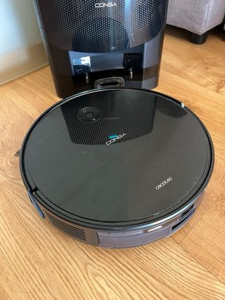 Aspiradora robot Conga en muy buen estado, casi nueva. Barre y friega. - Color negro. - Incluye base de carga.