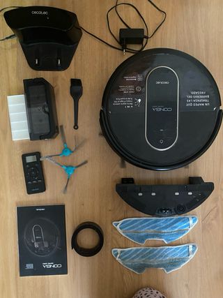 Aspiradora robot Cecotec Conga 1090. - Base de carga. - Depósito de polvo. - Mopa. - Cargador. Muy poco usada
