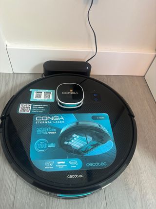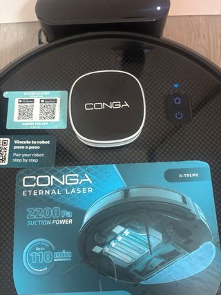 Robot aspirador Conga Eternal Laser . Solo necesita cambiarle la batería, porque dura apenas unos minutos, por lo demás esta en perfecto estado, como nueva, con filtros recién cambiados La vendo por haber comprado otra. - Potencia de succión de 2200 Pa. - Autonomía de hasta 110 minutos. - Capacidad para 2 mapas. NO NEGOCIABLE