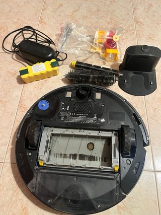 Robot aspirador Roomba e5 del año 2018. Diseñado para facilitar la limpieza del hogar. - Modelo: Roomba e5 - Año de fabricación: 2018 - Color: Negro y gris Da error 11 que corresponde a fallo del ventilador de aspiración, se puede cambiar todo el bloque de aspirado (120€Amazon) o mirar de cambiar el ventilador que no se lo que vale. Ahora mismo no funciona por qué se para por seguridad