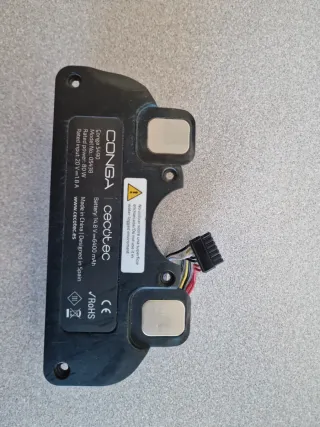 Batería de repuesto para robot aspirador Conga 5490. - Modelo: 05438 - Voltaje: 14.8 V - Capacidad: 6400 mAh - Potencia nominal: 80 W - Entrada nominal: 20 V = 1.8 A - Fabricado en China, diseñado en España. - Certificación CE y RoHS.
