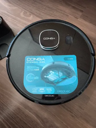 Robot aspirador Cecotec Conga Eternal Max en perfecto estado. Incluye todos sus accesorios. - Potencia de succión de 3000 Pa. - Autonomía de hasta 110 minutos. - Cepillo multifuncional. - 2 mopas. - Depósito mixto.