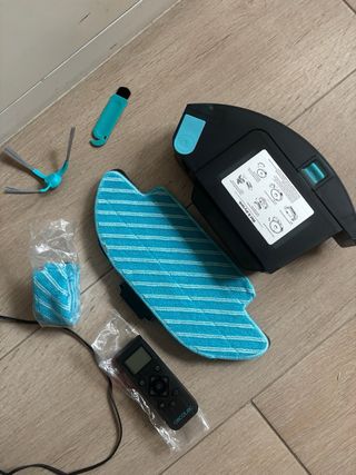 Robot aspirador Conga 11090. - Diseño moderno en color negro y azul. - Base de carga incluida. - Depósito de polvo. - Depósito de líquidos. Todos los repuestos que se están en las fotos de regalo Comprado el 20/08/2024