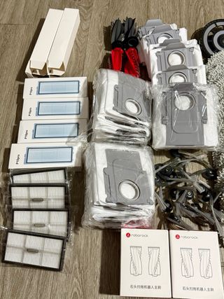 Lote de repuestos y accesorios para robot aspirador Roborock. - Filtros HEPA para Qrevo y Saro 1. - 20 Bolsas para el polvo. - 4 filtros de - Cepillos laterales y principales. - Mopas de limpieza. Recambios. De todo en la imagen El precio es por el llote, habiendo recambios originales, y distintas mopas, aprovecha y ahorrate un buen dinero con este lote para los robots de alta gama roborock