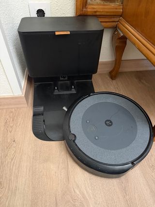 Se vende Roomba, robot aspiradora. Está en buen estado, con algunos pequeños signos de uso. Incluye la base de carga y el cargador. - Robot aspiradora Roomba. - Base de carga. - Cargador.