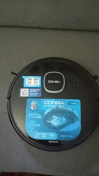 Robot limpiador. Recorrido aleatorio. No cuenta con sensores. Tiene filtro fácilmente extraíble para su limpieza. Como se puede ver está nuevo. Se conectó para ver que funcionaba y no se ha vuelto a usar. Cuenta con su caja, libro de instrucciones y cable de carga usb. Tener en cuenta que no es una Conga, es un robot mucho más sencillo y de aproximadamente la mitad de tamaño.
