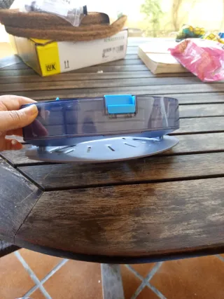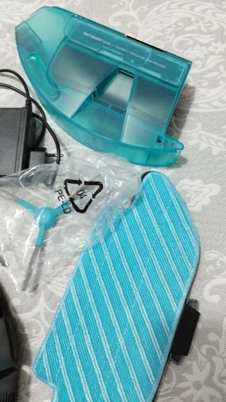 Se le ha cambiado la batería hace una semana porque duraba 15 minutos funcionando, ahora va perfecta. El robot aspirador de limpieza es de color blanco y también tiene un depósito de agua para fregar. Se envía lo que se ve en la primera foto