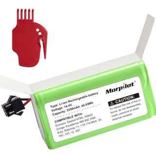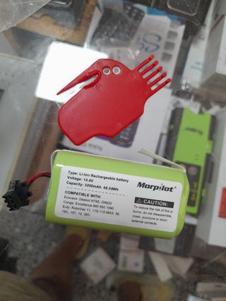 Vendo batería de litio para robot aspiradora, en buen estado. Es compatible con varios modelos de robots aspiradora de las marcas Ecovacs, Conga y Eufy. - Tipo de batería: Li-ion recargable - Voltaje: 14.4V - Capacidad: 3200mAh, 46.08Wh - Incluye una herramienta de extracción.