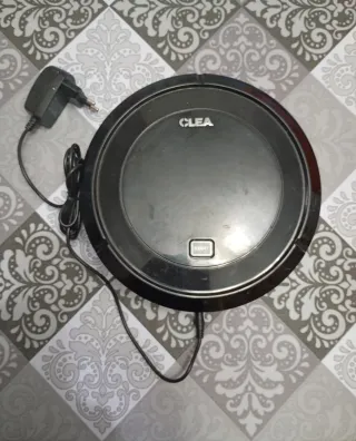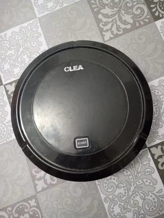 Robot aspirador de la marca Clea, color negro. - Botón de inicio. - Diseño redondo.