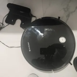Aspiradora robot de color negro, ideal para mantener tu hogar limpio. Incluye su base de carga. - Diseño redondo y compacto. - Acabado brillante. - Marca: IKOHS.