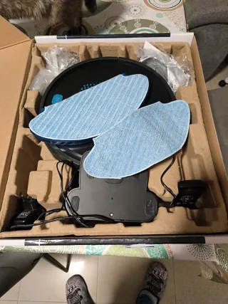 Robot aspirador Xiaomi Vacuum E12 completamente nuevo. Solo se ha usado una vez. Tiene modo fregado, incluye un depósito de agua en el interior y una mopa que se le pega en caso de querer utilizarlo. Se activa desde el móvil y yo no tengo tiempo de hacerlo y mi mujer prefiere un aspirador normal. La única vez que lo usamos fue genial, incluso para los pelos de gato. Se entrega completamente limpio