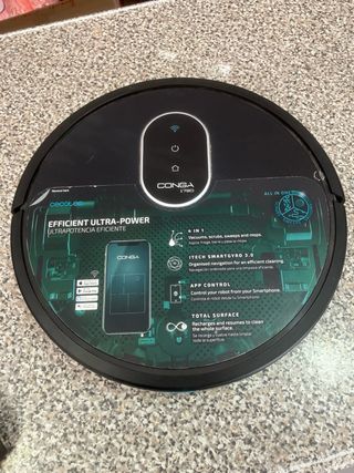 Robot aspirador Conga 1790, usado pero funcionando perfectamente. Ideal para mantener tu hogar limpio. - Tecnología ITECH SMARTGYRO 3.0 para una navegación eficiente. - Función 4 en 1: aspira, friega, barre y pasa la mopa. - Controlable desde smartphone mediante App. - Vuelve a la base de carga automáticamente.