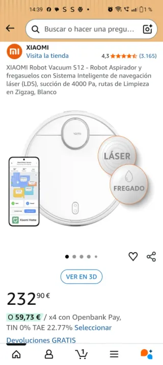 • De media, comprar Robot aspirador en Wallapop es un 44% más barato que comprar este tipo de producto nuevo