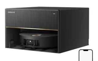 Aspiradora robot Dreame X50 en color negro. Diseño moderno y elegante. - Base de carga y autolimpieza. - Acabado premium.