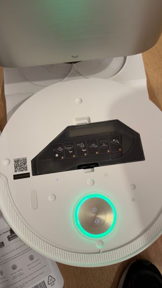Mova V50 Ultra Complete Robot Aspirador con Función de Fregado, 24.000 Pa, Supera Obstáculos de 6cm, Navegación Elevable+IA RGB, Lavado con Agua Caliente 80° y Autosecado 63°, Sistema DuoSolution - Base de carga incluida. - Indicadores luminosos. - Botones de control táctiles.