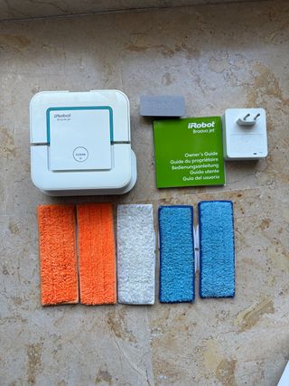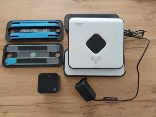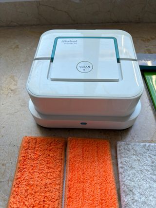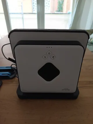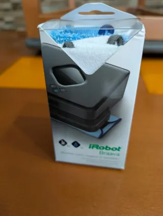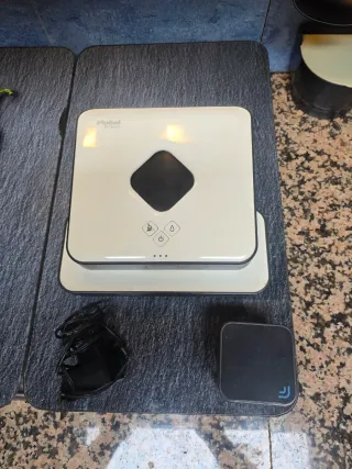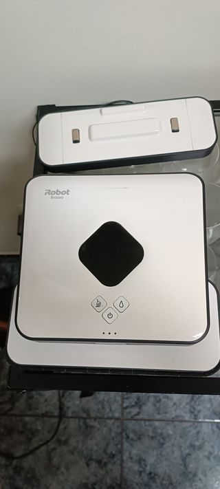 Robot de fregado iRobot Braava jet, diseñado para limpiar tu hogar de forma autónoma. - Tecnología de navegación inteligente. - Limpieza con agua. - ideal para pequeñas habitaciones, creo que unos 20m2 como mucho - se ha usado muy poco, hay que comprar mopas y sino un poco caras