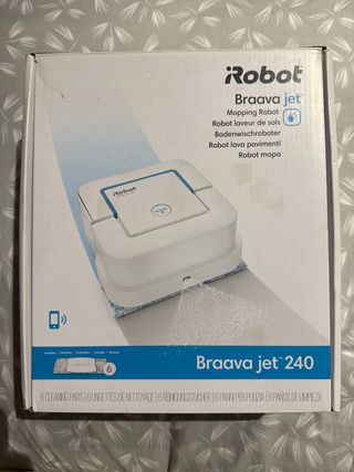 Robot aspirador y friegasuelos iRobot Braava Jet 240. - Incluye robot. - Incluye almohadillas de fregado húmedo. - Tengo la caja original