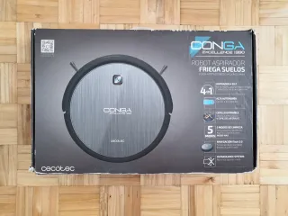 Robot aspirador y friegasuelos Conga Excellence 990 de Cecotec para PIEZAS de REPUESTO o RECAMBIO porque debe tener algún problema en la batería. Lo puedes utilizar para piezas de repuesto, en especial y por ejemplo, la base y cable de carga, el mando a distancia, la mopa (que está nueva), el depósito de fregar, etc. Incluye: * Robot aspirador (batería estropeada) * Depósito de aspirado * Depósito especial de fregado con mopa (casi sin usar, la mopa está casi nueva) * Base y cable de carga * Mando a distancia * 2 filtros HEPA * 4 cepillos laterales * Cepillo central * Herramienta de limpieza para el propio robot * Instrucciones