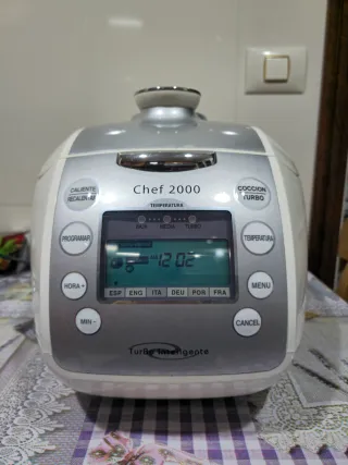 Olla programable Chef 2000 en buen estado. Incluye dos libros de recetas. - Modelo Chef 2000 con función Turbo. - Tecnología Turbo Inteligente. - Panel de control digital. - Incluye 2 libros de recetas (más de 1500 recetas en total).