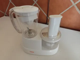 Multi Robot Grand Chef Alt-2000 (Altic) nuevo, sin estrenar, solo abierto para la foto. Funciones: Exprime, amasa, bate/mezcla/tritura. Medidas totales: 22,5 cm. Ancho x 12,5 cm. Fondo x 23,5 cm. alto Medidas vaso grande (batidora): alto 14,5 cm.; diametro base 8 cm., diametro tapa 10,5 cm. Capacidad 500ml. Medidas vaso pequeño (ralladora) : alto 8 cm.; diametro 10 cm. Capacidad 200 ml. Funciona con 6 pilas LR14 (1,5 voltios) o con un adaptador de 9 voltios y 1,5 amperios. No se incluyen ni las pilas ni el adaptador. Con manual de instrucciones. Mira mis otros artículos