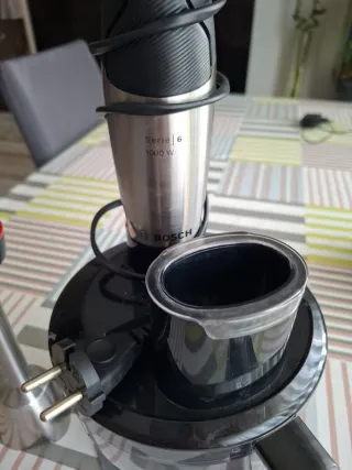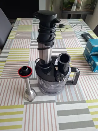 Robot de cocina versátil con varios accesorios. - Incluye batidora de mano. - Base con recipiente. 1000W