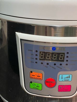 Robot de cocina multifunción de la marca Mercedes. - Mantiene caliente. - Funciones: arroz, pasta, vapor, pastel, cazuela, sopa, potajes. - Botón de inicio y apagado. - Pantalla digital. - Programación de tiempo.